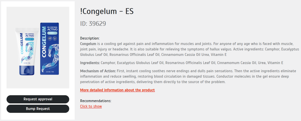 Um exemplo de nomeação bem-sucedida e de respeito às normas de registro de produtos é o bálsamo refrescante para articulações «Congelum «. Em espanhol, é «con hielo», que se traduz como «com gelo» — o que significa que o nome transmite o efeito refrescante e, ao mesmo tempo, é facilmente compreendido em diferentes idiomas. Esse nome também inclui a palavra «gel».
